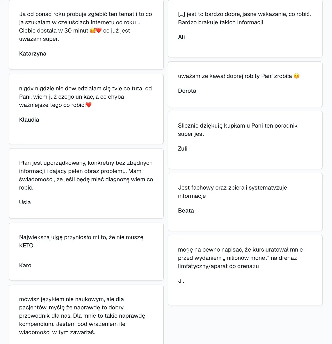 Opinie klientek, które zakupiły wcześniejsze materiały od: Plan na Lipedemę™.