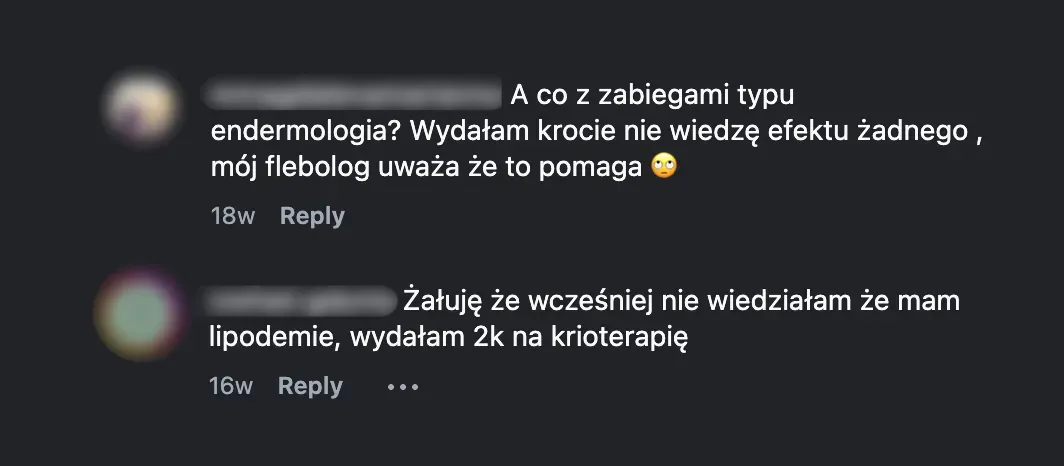 P.S. Lipedema niestety jest nieprzewidywalna. Każdy miesiąc czekania to ryzyko, że zmiany mogą się stać trudniejsze do opanowania.